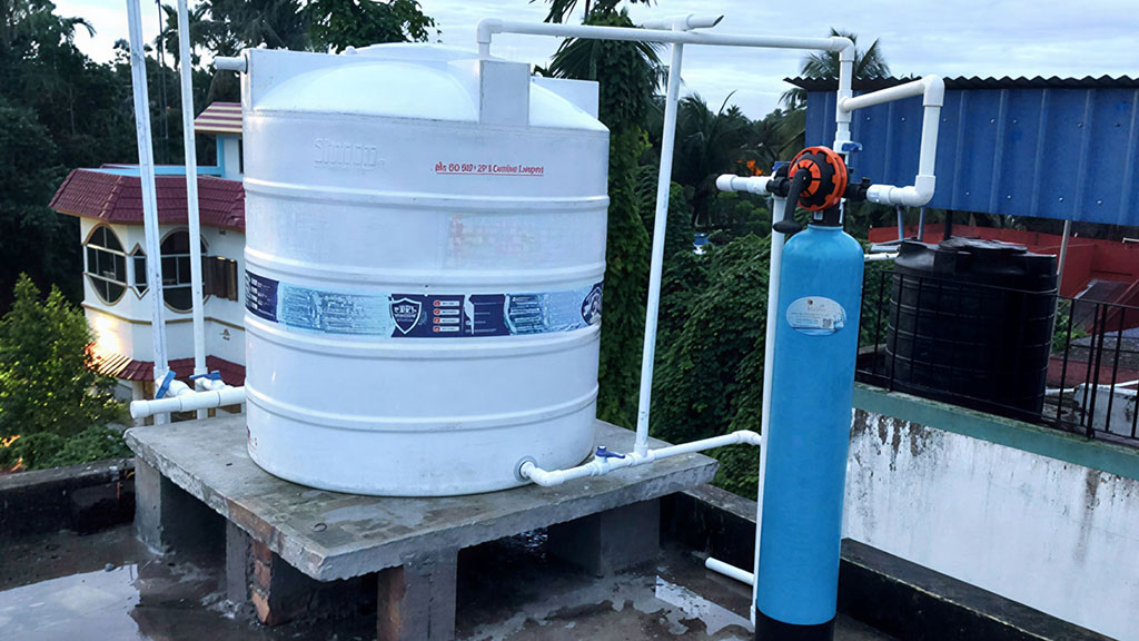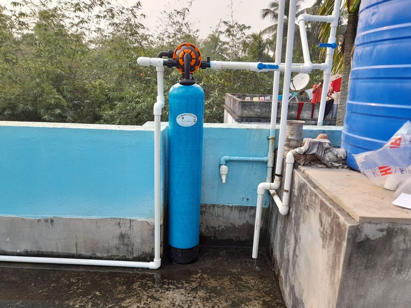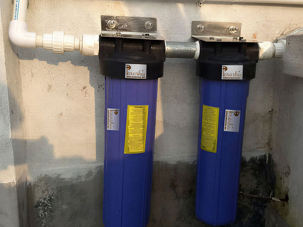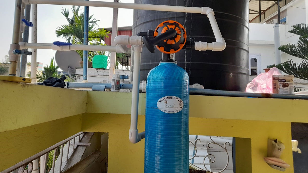 These are common indicators of iron contamination in groundwater. Installing a media iron removal filter helps remove dissolved iron before the water reaches the overhead tank.